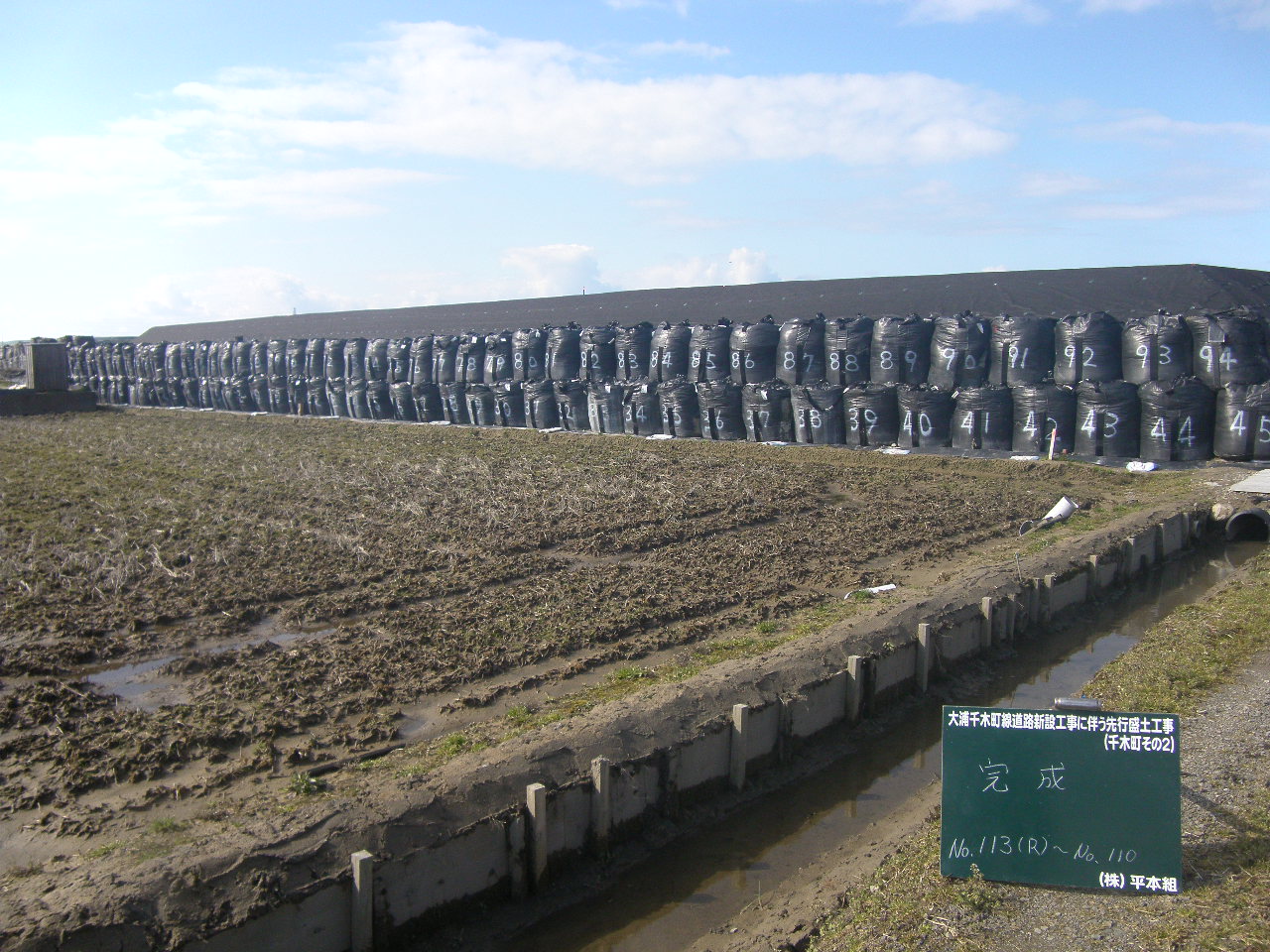 先行盛土工事をいたしました。高品質な土構造物を創るため、雨の影響を受けていないかを随時確認します。